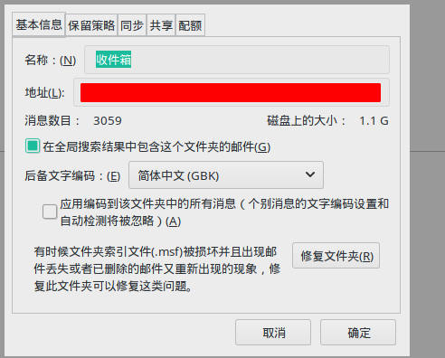 thunderbird收件箱,只显示未读条数,但不显示邮件内容的问题解决