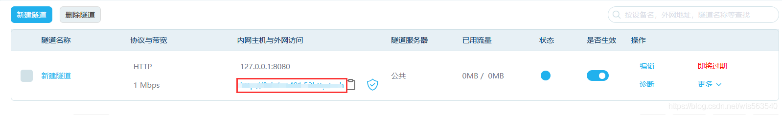 隧道建立好,会给我们生成一个域名