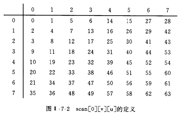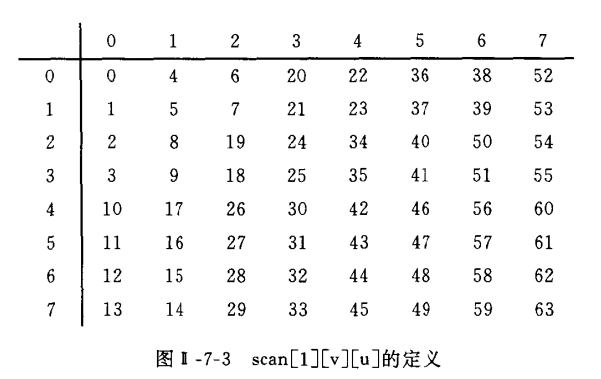 扫描包括两种方式,有图像头扩展中的alternate_scan决定,具体如下图所示,其中alternate_scan为的时候就是zig-zag扫描。