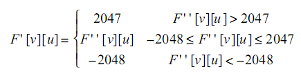 饱和化是要将F''钳位到一个固定的区间范围之内[-2048:2047],输出为F',具体做法如下: