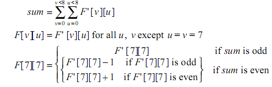 首先将所有的系数求和,然后根据和的最低位的奇偶性来修改F[7][7],其他系数不变。