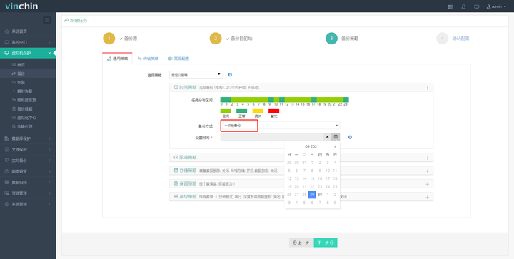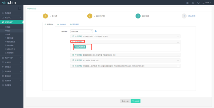 4、设置备份策略,备份方式有【按策略备份】和【一次性备份】