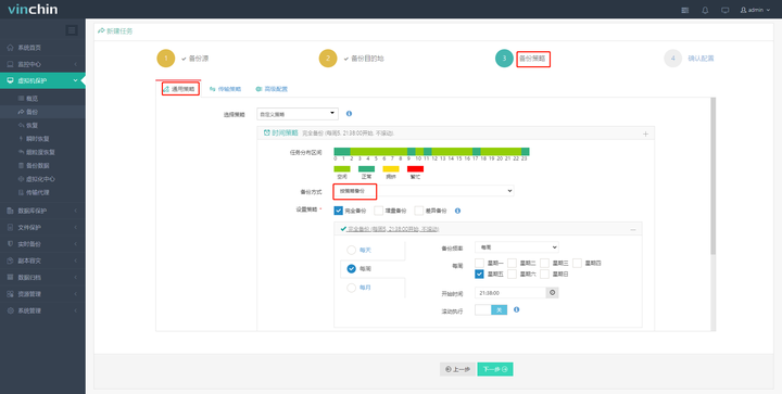 若选择【按策略备份】,则会按照设置的时间策略来进行备份。