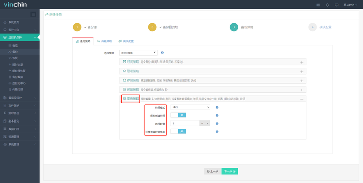 深度有效数据提取:开启后,能够进一步从源端减少备份数据,降低网络负载。
