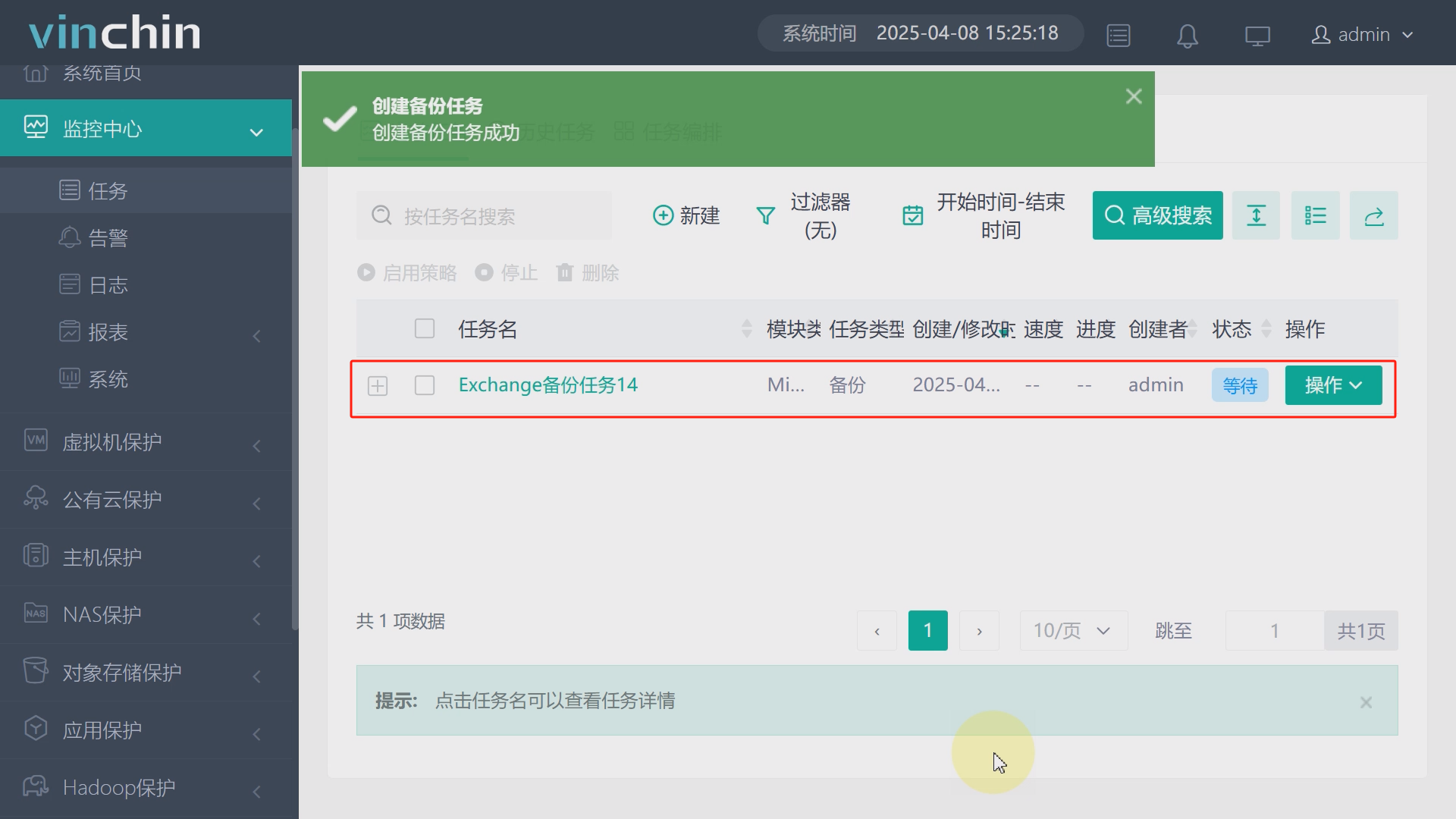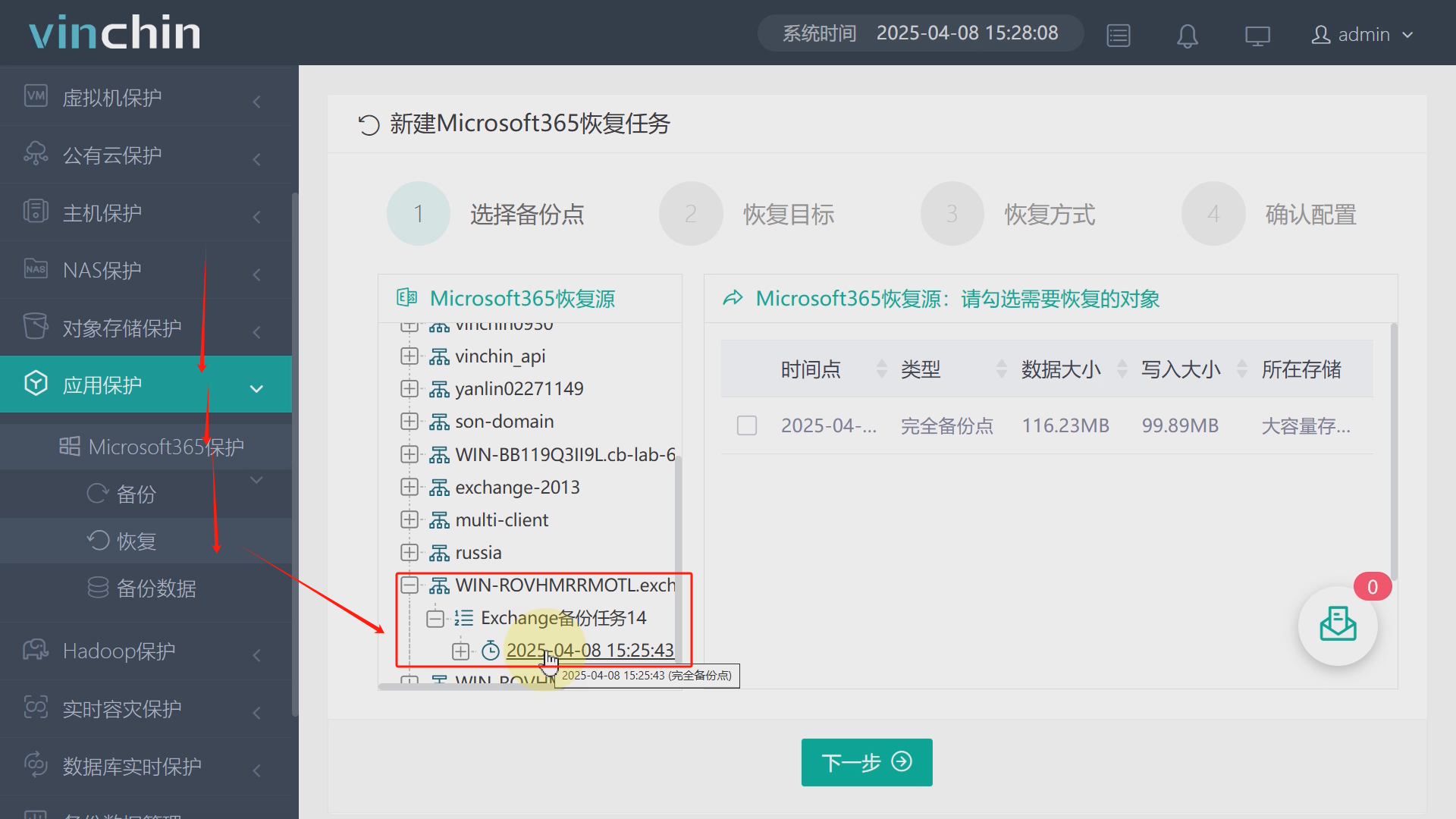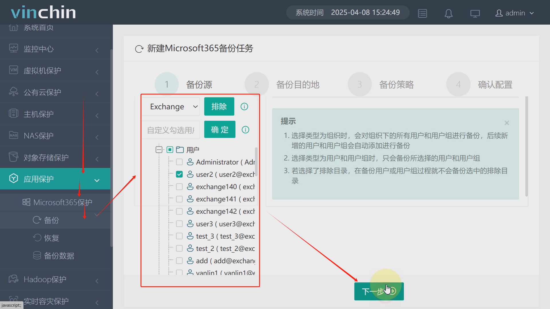 3、创建Exchange Server备份任务
