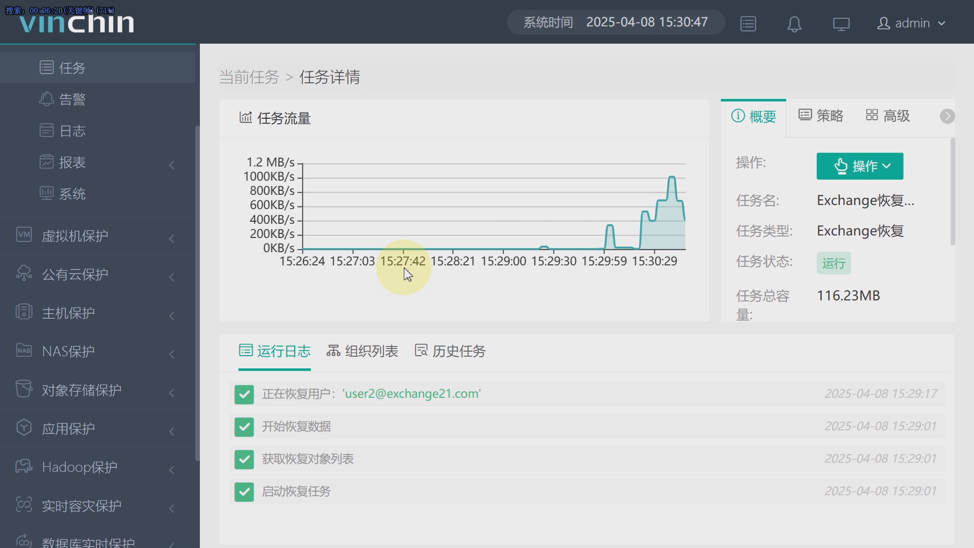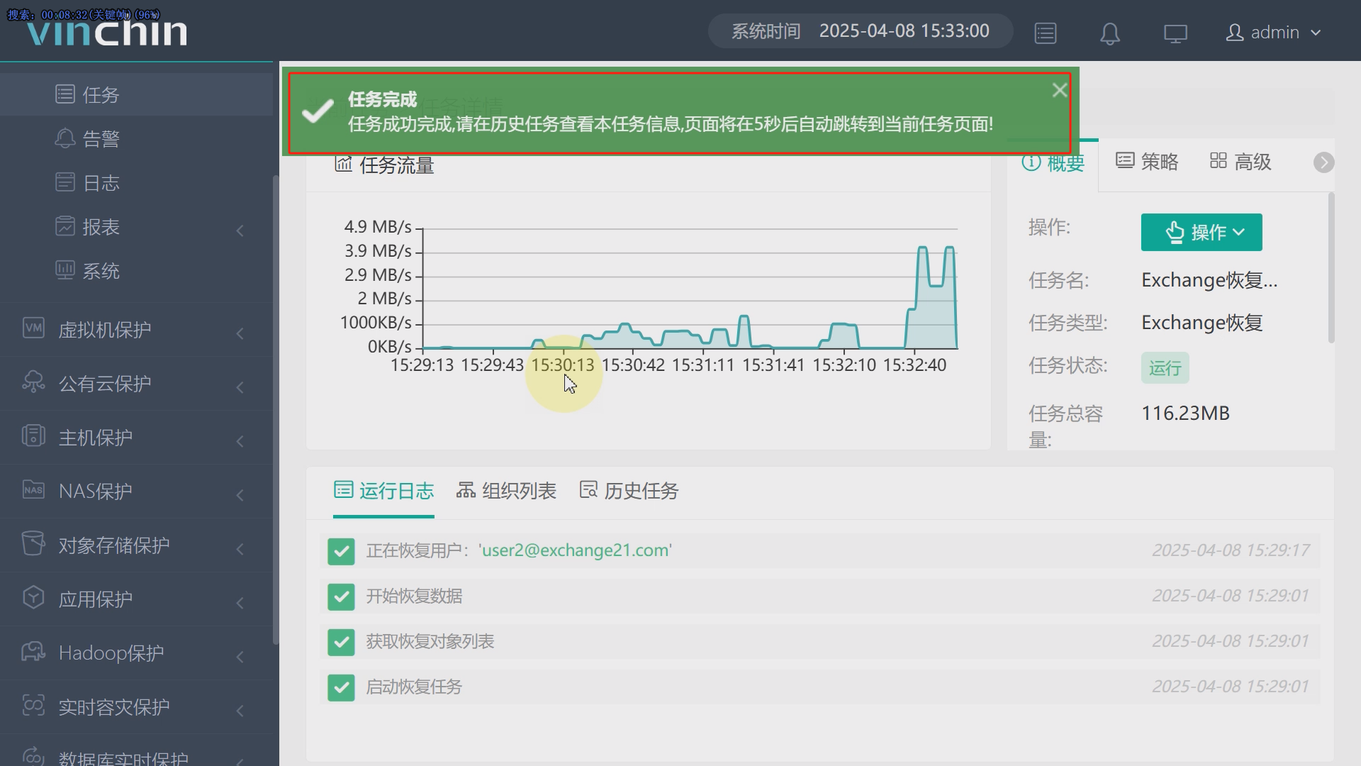 4、创建并执行Exchange Server恢复任务