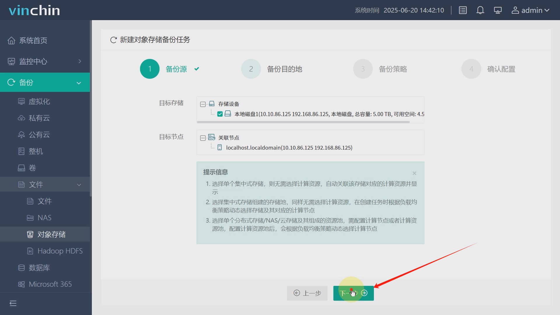 系统已自动选择目标节点和目标存储,点击下一步,如图6。
