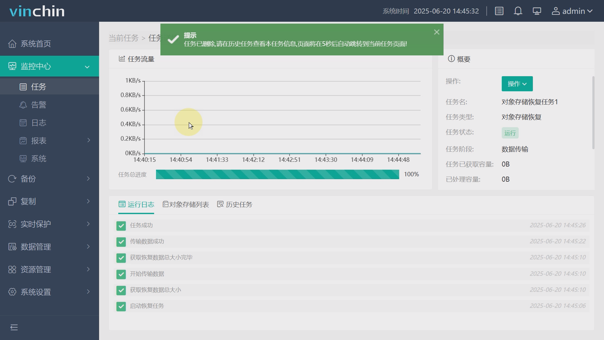 配置恢复任务名称、检查参数,无问题后点击提交,恢复任务创建完成,恢复任务将立即执行,如图13。
