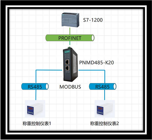 本案例控制的主要对象是信衡控制秤仪表的数据参数的显示和报警,仪表型号XH3180 -K ,系统主 PLC 选用 西门子S7 1200,将设备接入西门子 PLC的采集数据模块采用MODBUS转 PROFINET 网关,网关型号微硬创新PNMD485-K20,本文主要介绍 MODBUS 转PROFINET 网关PNMD485-K20的配置方法。