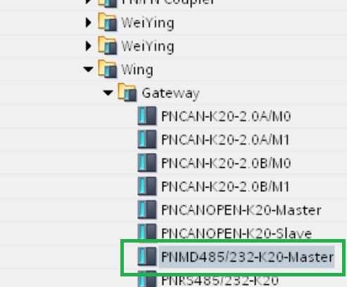 第二步:选择微硬创新 Modbus 转Profinet 网关PNMD485-K20