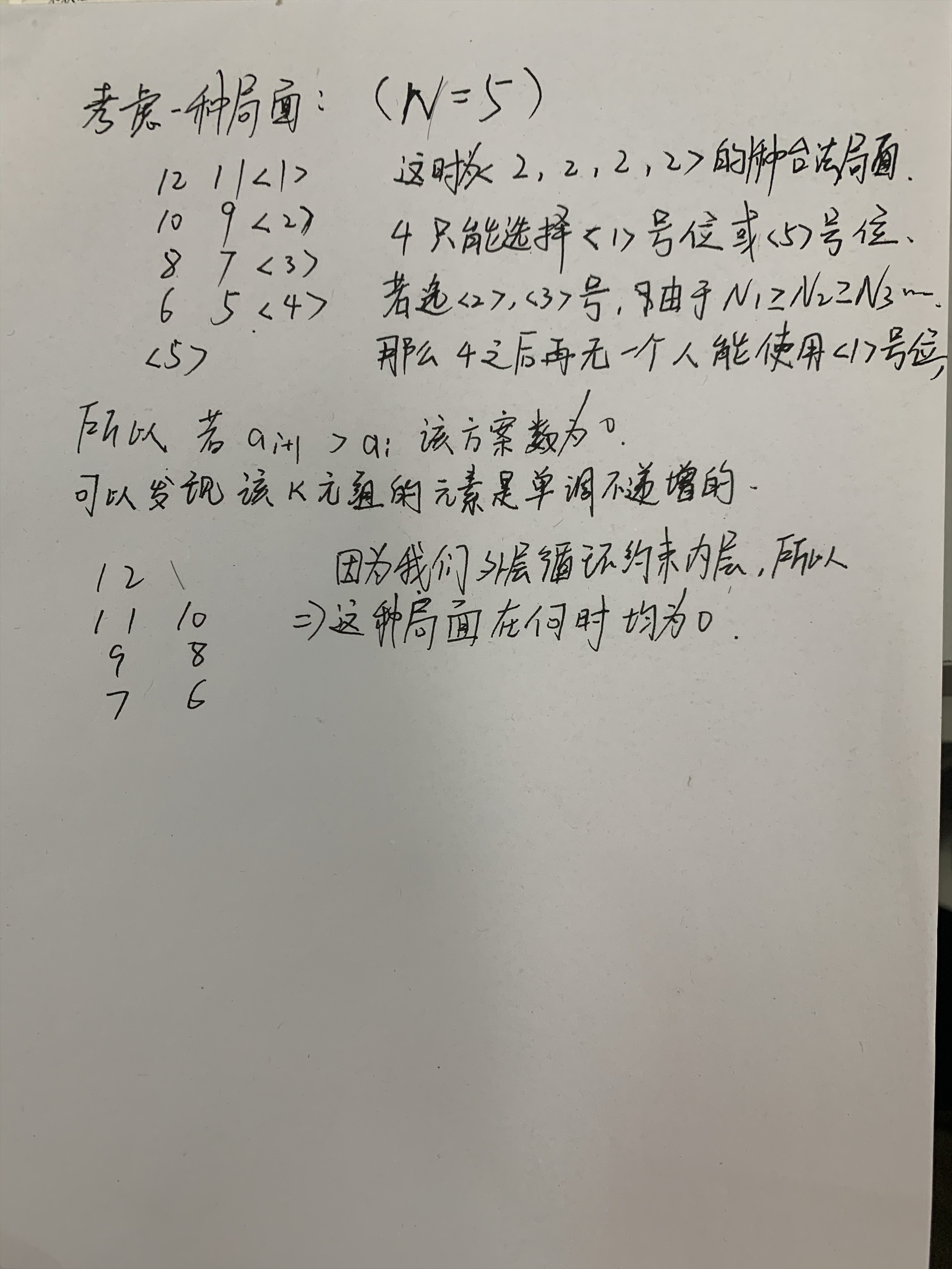 下面的一排三角矩阵给出了当 时的全部16种合影方案。注意身高最高的是1,最低的是6。