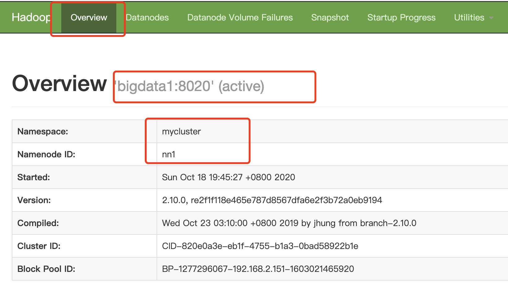 [root@bigdata1 ~]# hdfs haadmin -getServiceState nn1 active [root@bigdata1 ~]# hdfs haadmin -getServiceState nn2 standby