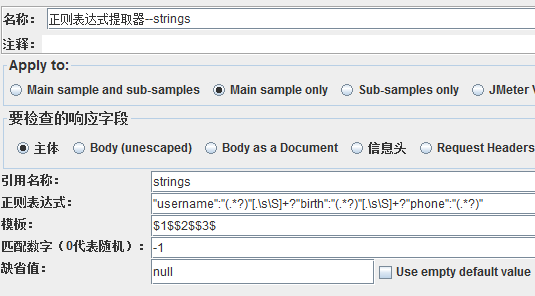 一:正则提取器配置(比较通用)--只取一个变量--取不到要注意边界