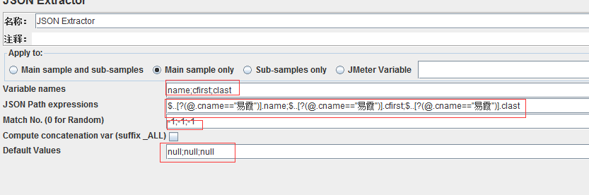 二:json提取---(相较于正则优点:可以同时取多个值,多个值用封号隔开,缺点:配置错了不用报错,只适用于json)