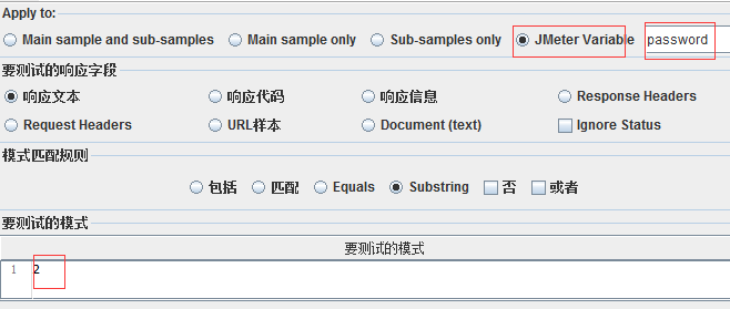 响应断言里面--注意断言的变量不需要加${password}直接password