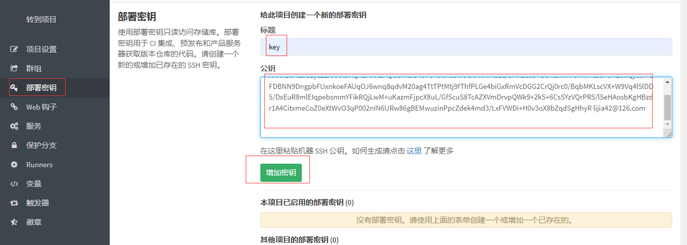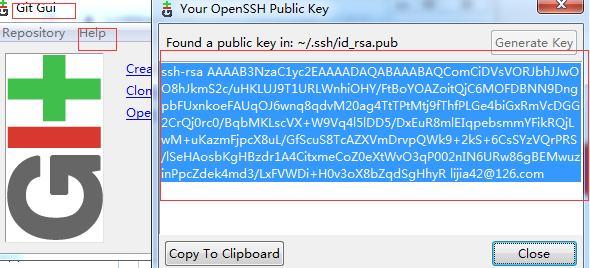 开始--GitGUI-Help-Show SSH key--复制密钥到git服务端(设置---部署密钥)