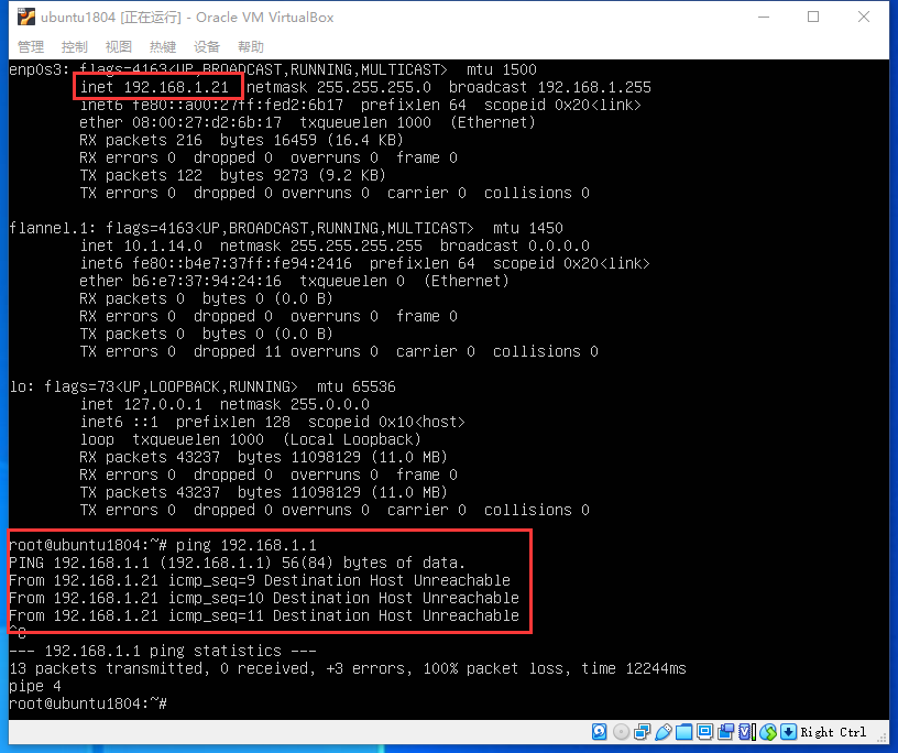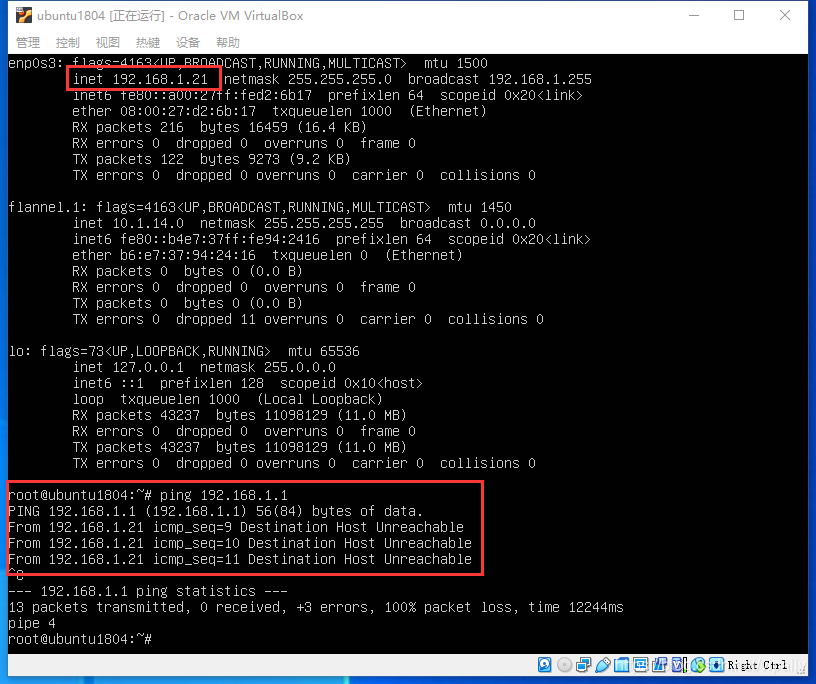 但是VM无法ping通网关,也无法访问internet