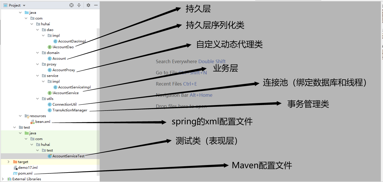 前一篇虽然也实现了该案例,但是由于每个业务都需要进行事物处理,导致代码过于臃肿;为了解决这个问题,这里采用动态代理技术进一步完善该项目