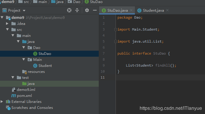 ③创建持久层接口(行业规则为Dao包下xxxDao接口)