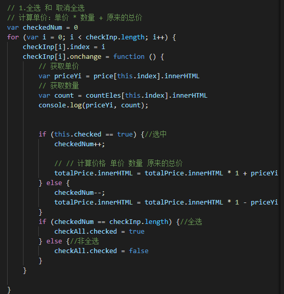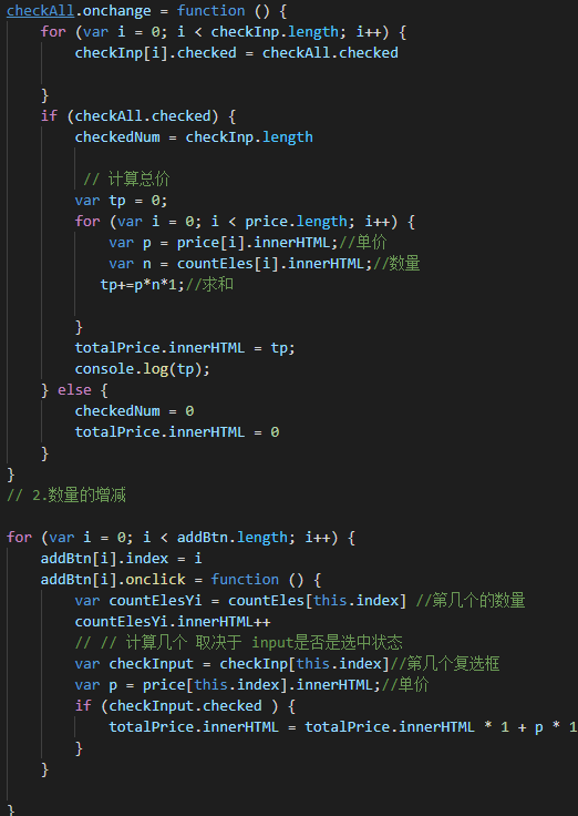 点击全选,所有商品按钮为选中状态,并计算商品的数量的总价