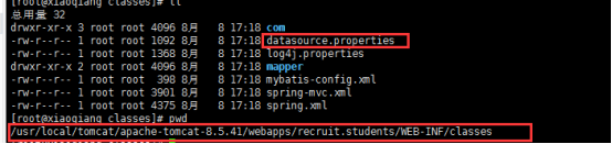 cd /usr/local/tomcat/apache-tomcat-8.5.41/webapps/recruit.students/WEB-INF/classes