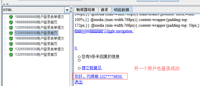 5.查看下结果,其中一个账户登录成功