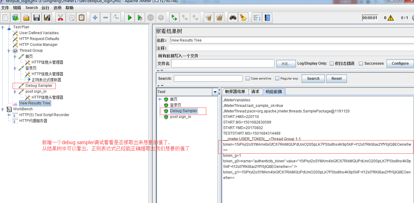 6.正则表达式一定要放在需要捕捉的页面里面,调试取样器是放在引用的界面的。