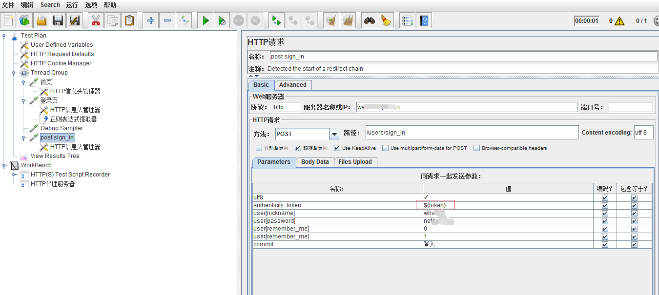 提取出来动态的authenticity_token值后,在post协议中把这个值给替换成变量,这样每次提交的时候这个值就会跟着变化了