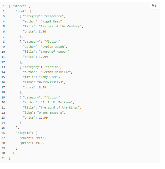 $.store.* :商店所有的东西,包括book和bicycle