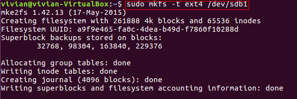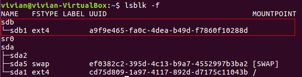 格式化以后,可以看到磁盘已被分配了一个UUID: