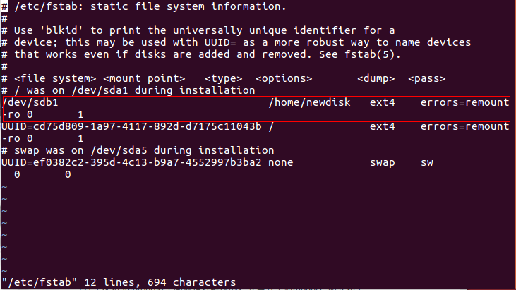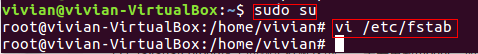 先输入sudo su再在控制台输入 vi /etc/fstab修改这个文件。