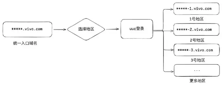 我们设计了一个多地区统一域名入口,进入之后运营可以根据需求切换不同地区,不需要在单独保存各个地区的独立链接,登录链路也会整合到入口域名,整体链路如下图所示: