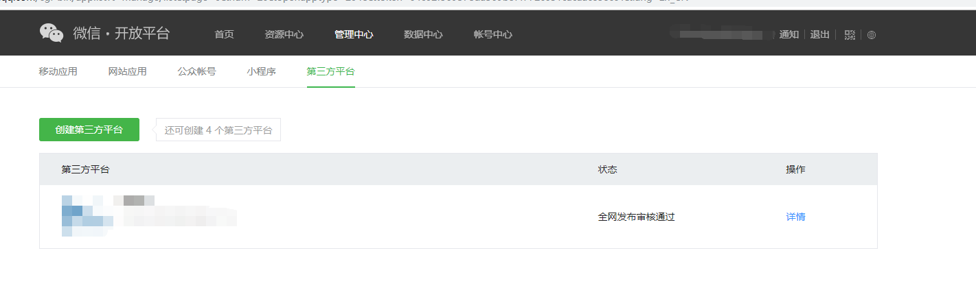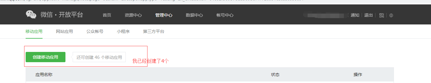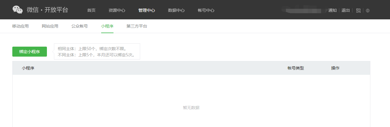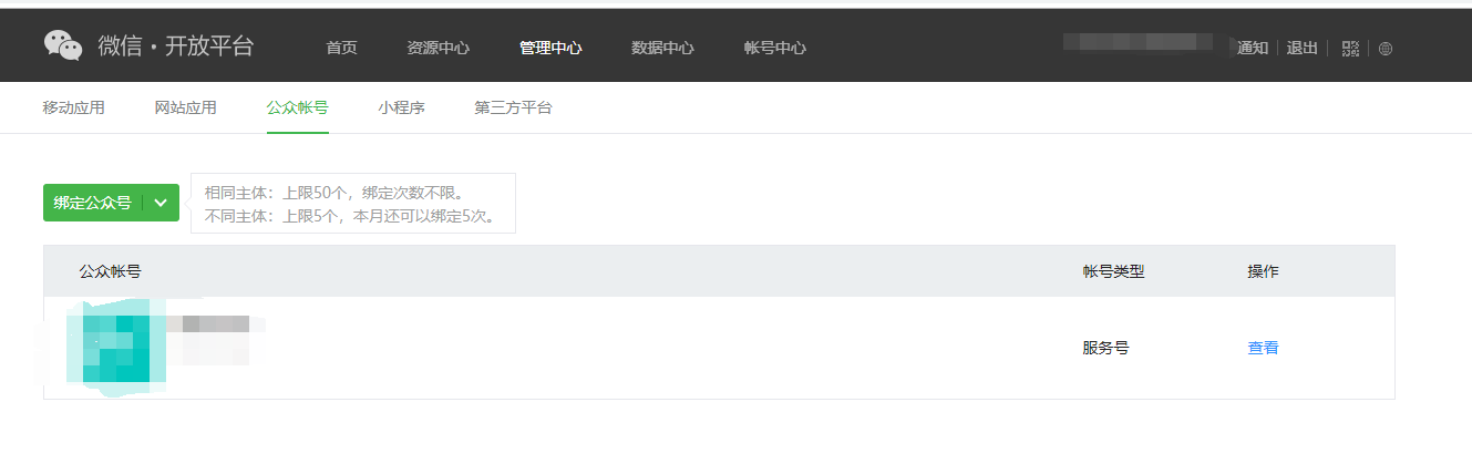 微信开放平台绑定各移动应用、网站应用、公众号、小程序、第三方的个数
