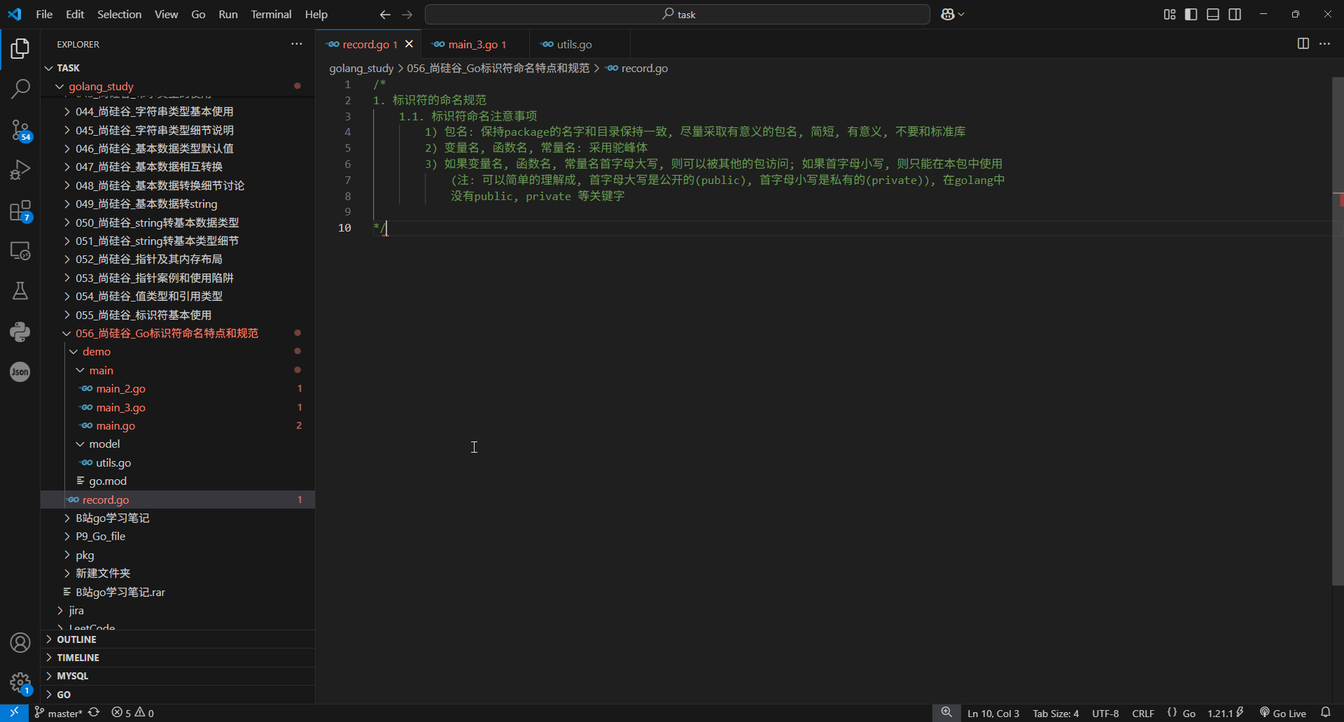 1.标识符的命名规范