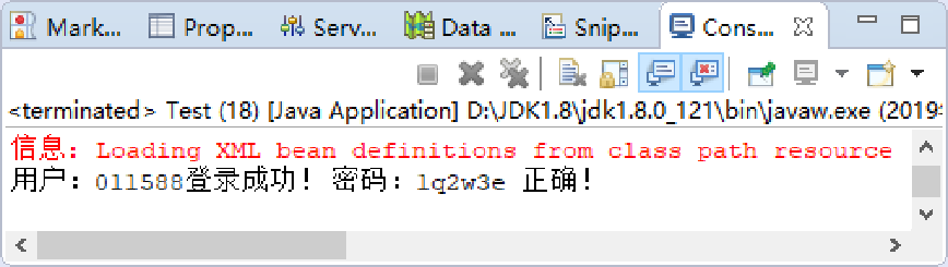 spring练习,使用Eclipse搭建的Spring开发环境,属性注入通过构造方法方式实现,模拟用户的正常登录。