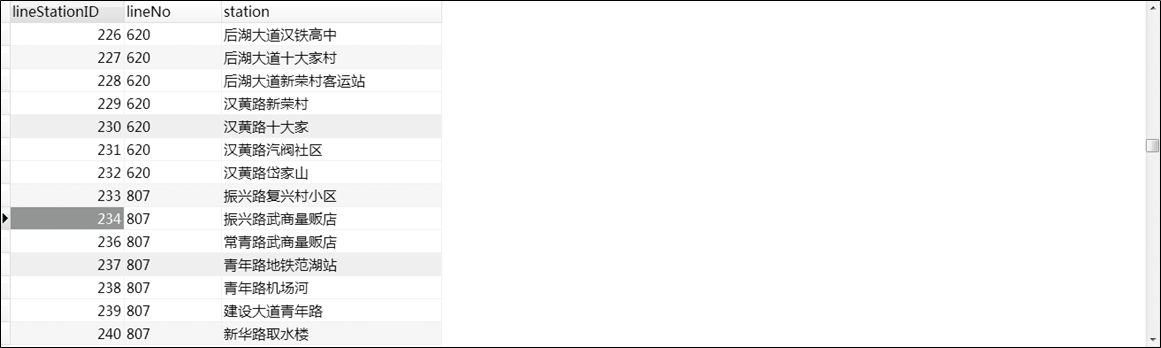 公交线路站点表用于存储每条公交线路与其所属站点之间关联关系: