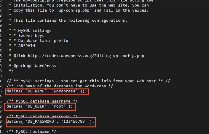 sed -i 's/database_name_here/wordpress/' /var/www/html/wp-blog/wp-config.php