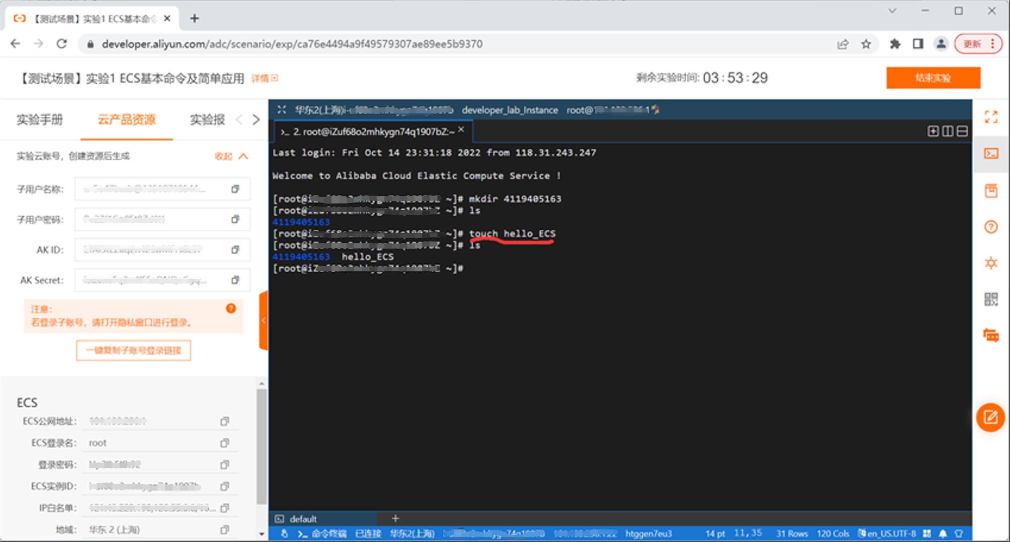 实验地址:ECS基本命令及简单应用 - 云起实验室-在线实验-上云实践-阿里云开发者社区-阿里云官方实验平台-阿里云