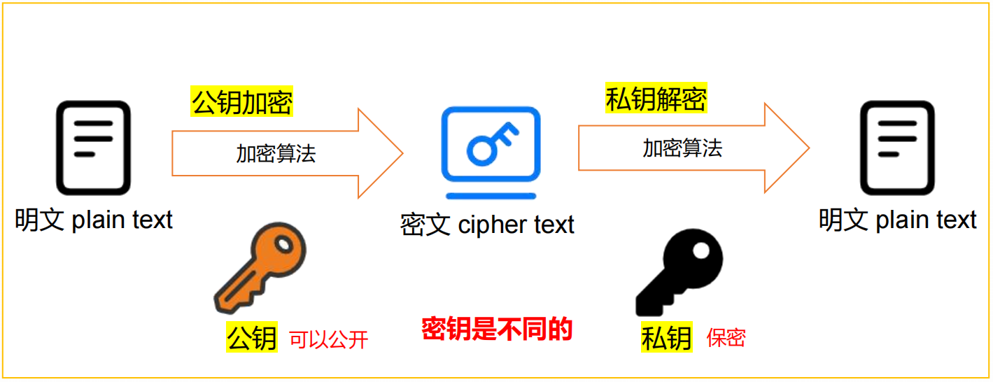- 特点:使用两个密钥:公钥和私钥,公钥可以任意分发而私钥保密,常用的有 RSA
