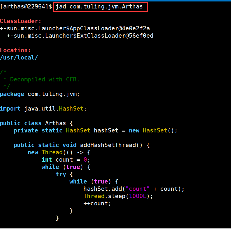 输入 jad加类的全名 可以反编译,这样可以方便我们查看线上代码是否是正确的版本