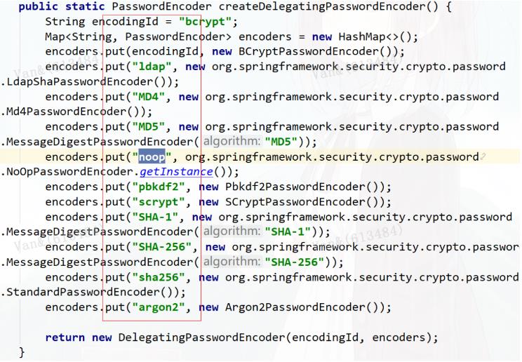 支持的加密方式可以通过PasswordEncoderFactories查看