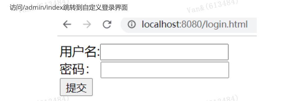 <!DOCTYPE html> <html xmlns="http://www.w3.org/1999/xhtml" xmlns:th="http://www.thymeleaf.org"> <head> <meta charset="UTF-8"> <title>Title</title> </head> <body> <form action="/login" method="post"> <input type="hidden" th:value="${_csrf.token}" name="_csrf" th:if="${_csrf}"/> 用户名:<input type="text" name="username"/><br/> 密码: <input type="password" name="password"/><br/> <input type="submit" value="提交"/> </form> </body> </html>