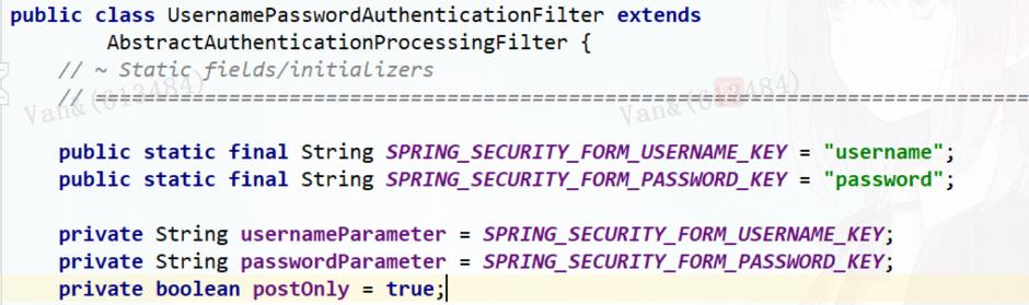 当进行登录时会执行 UsernamePasswordAuthenticationFilter 过滤器