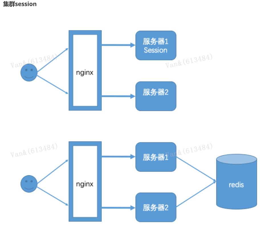 (redis、mongodb、mysql等)中,所有服务器都访问同一个库,都从同一个库来获取用户的session信息,如用户在服务器一上登录,将会话信息保存到库中,用户的下次请求被分配到服务器二,服务器二