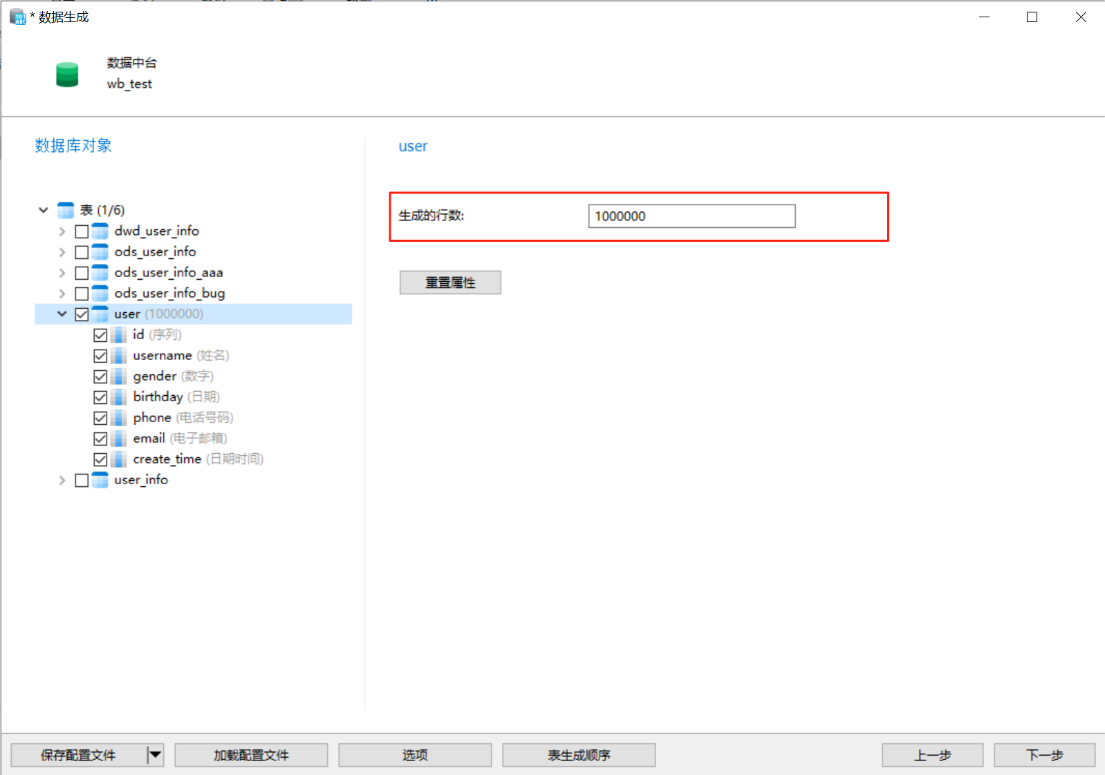 4.可以对配置文件进行保存。同时生成多个有关联的表时可以设置表生成顺序,点击下一步可以对数据进行预览,然后点击开始执行任务