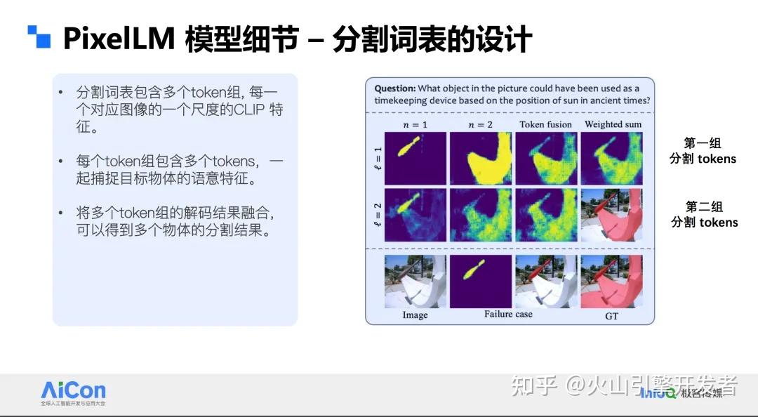 接下来是分割词表的设计。为了克服之前工作只能定位单个物体的限制,我们设计了多组分割词表或分割 token,每组 token 代表不同的尺寸,组内每个 token 代表不同的物体。通过预测结果的融合,我们能够成功地定位图像中的多个物体和不同尺寸的物体,例如同时定位下图右侧日轨的托和指针。