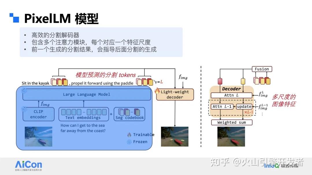 针对目前学术界在大语言模型与物理世界交互方面的一些方案,我们发现它们存在效率不高、实用性有限,以及能力上的缺陷,比如只能定位单个物体而无法同时定位多个物体。为了解决这些问题,我们提出了 PixelLM 模型架构,这是一个像素级别的大语言模型,它不仅高效,而且具备多物体定位的能力,能够进行推理和分割,减少幻觉回答的发生。