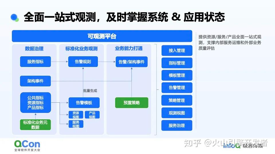 在边缘云原生操作系统内,我们提供了资源、服务、产品的全面一站式观测,通过数据采集、治理、到标准化观测,到业务能力打通,可观测这一侧支撑了边缘云操作系统的自身运维、稳定性建设,也支撑了上层服务的质量保障。