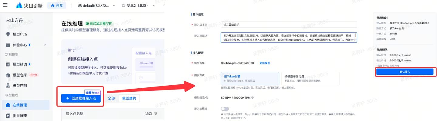 - 进入导航栏的“模型推理”,点击【创建推理接入点】