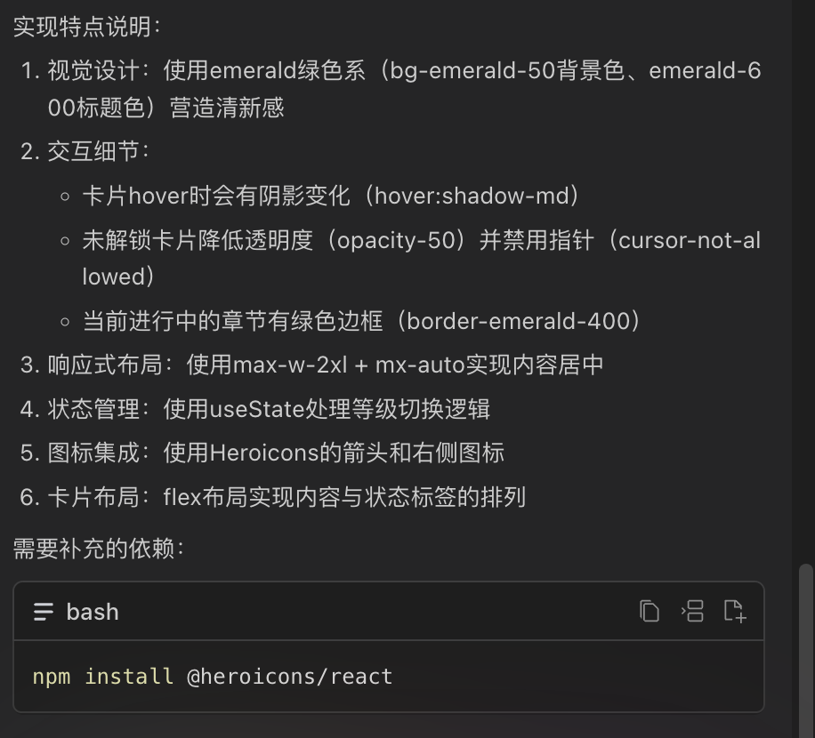 现在进入正式练习部分的页面编写,我们继续向MarsCode输入以下提示词